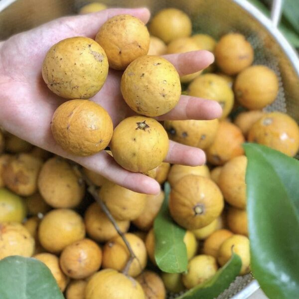 - Quả: Quả Đào Tiên có hình cầu, đường kính khoảng 10cm. Vỏ quả dày, cứng, màu xanh khi còn non và chuyển sang màu nâu khi chín. Ruột quả màu trắng, có nhiều hạt dẹt.
