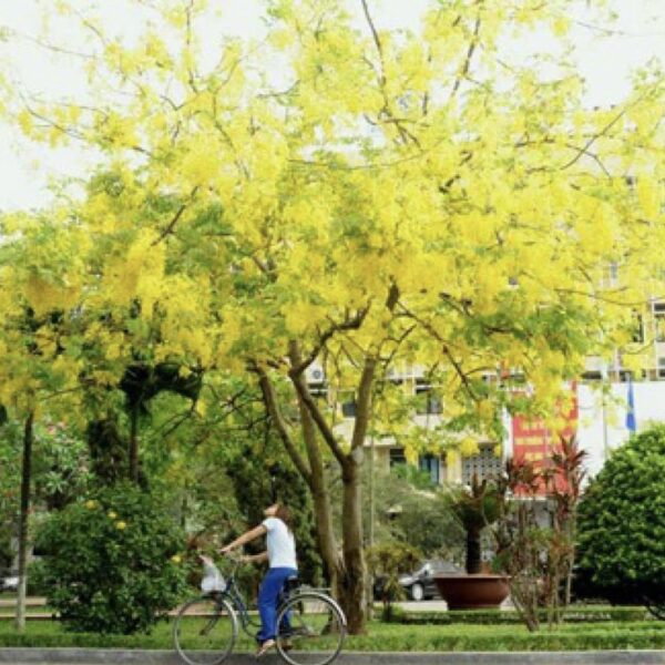 Cây Muồng Hoàng Yến là một loài cây thân gỗ, có thể cao tới 10-20m. Cây có tán rộng, lá xanh mướt quanh năm. Hoa Muồng Hoàng Yến mọc thành chùm lớn, rủ xuống, mỗi bông có 5 cánh màu vàng tươi rực rỡ. Hoa nở rộ vào mùa hè, tạo nên một khung cảnh vô cùng đẹp mắt.