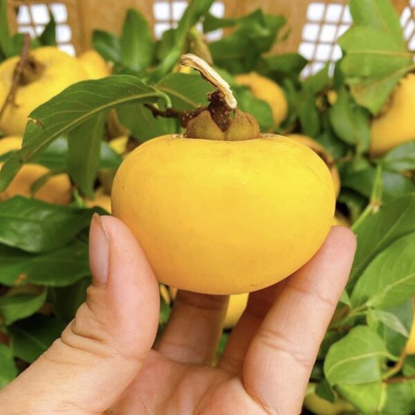 - Quả thị thơm khi chín có màu vàng cam, hình tròn hoặc hơi dẹt, đường kính từ 2 – 4 cm, có 5 múi, vỏ mỏng, ruột trắng, vị ngọt thanh, thơm dịu.