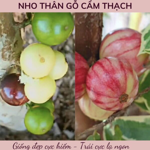 Nho Thân Gỗ Cẩm Thạch hay còn gọi là nho 7 màu là một giống nho thân gỗ quý hiếm có nguồn gốc từ Nhật Bản. Loại nho này được ưa chuộng bởi vẻ ngoài độc đáo, hương vị thơm ngon và giá trị kinh tế cao.