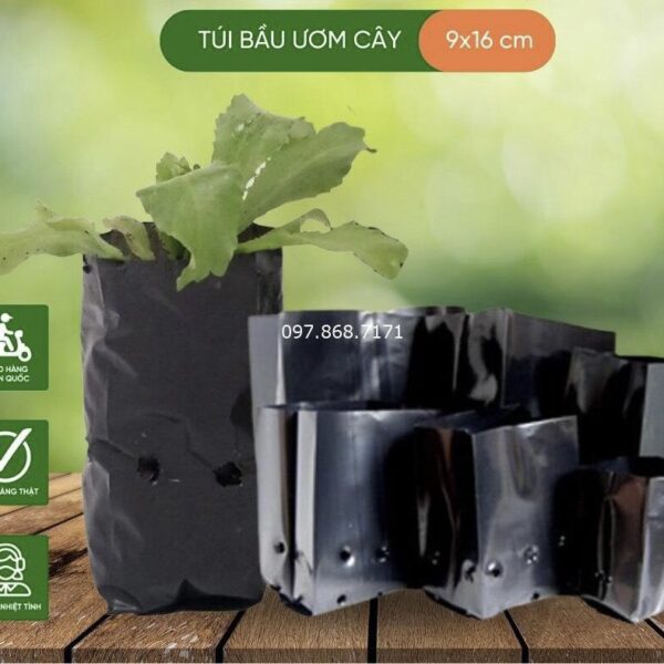 Túi bầu ươm cây đen là loại túi nilon được sản xuất từ hạt nhựa PE tái sinh màu đen và phụ gia ngành nhựa nên túi có độ dẻo dai, bóng đẹp và độ bền cao.